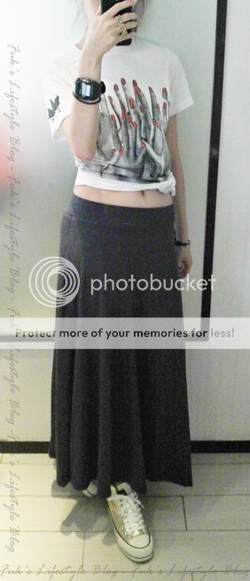 裙子方面是素色的長裙, 對身型有很強的修飾力。XD