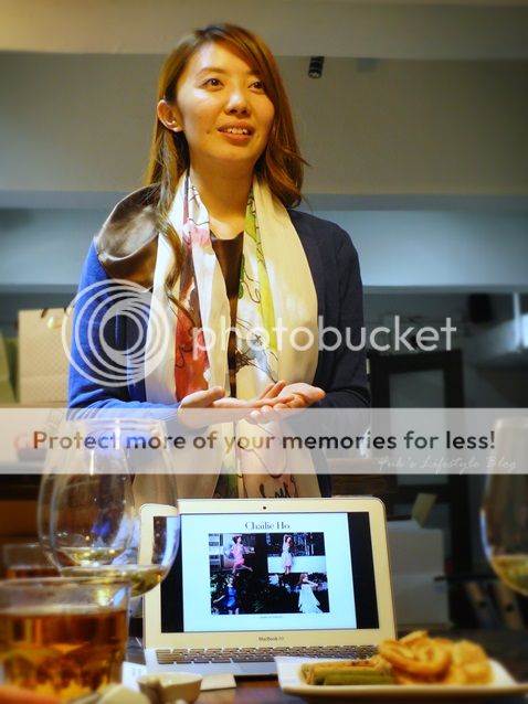絲質、雪紡等柔軟的物料是她經常使用的素材。這晚她也穿了自己設計的裙子給大家作示範。